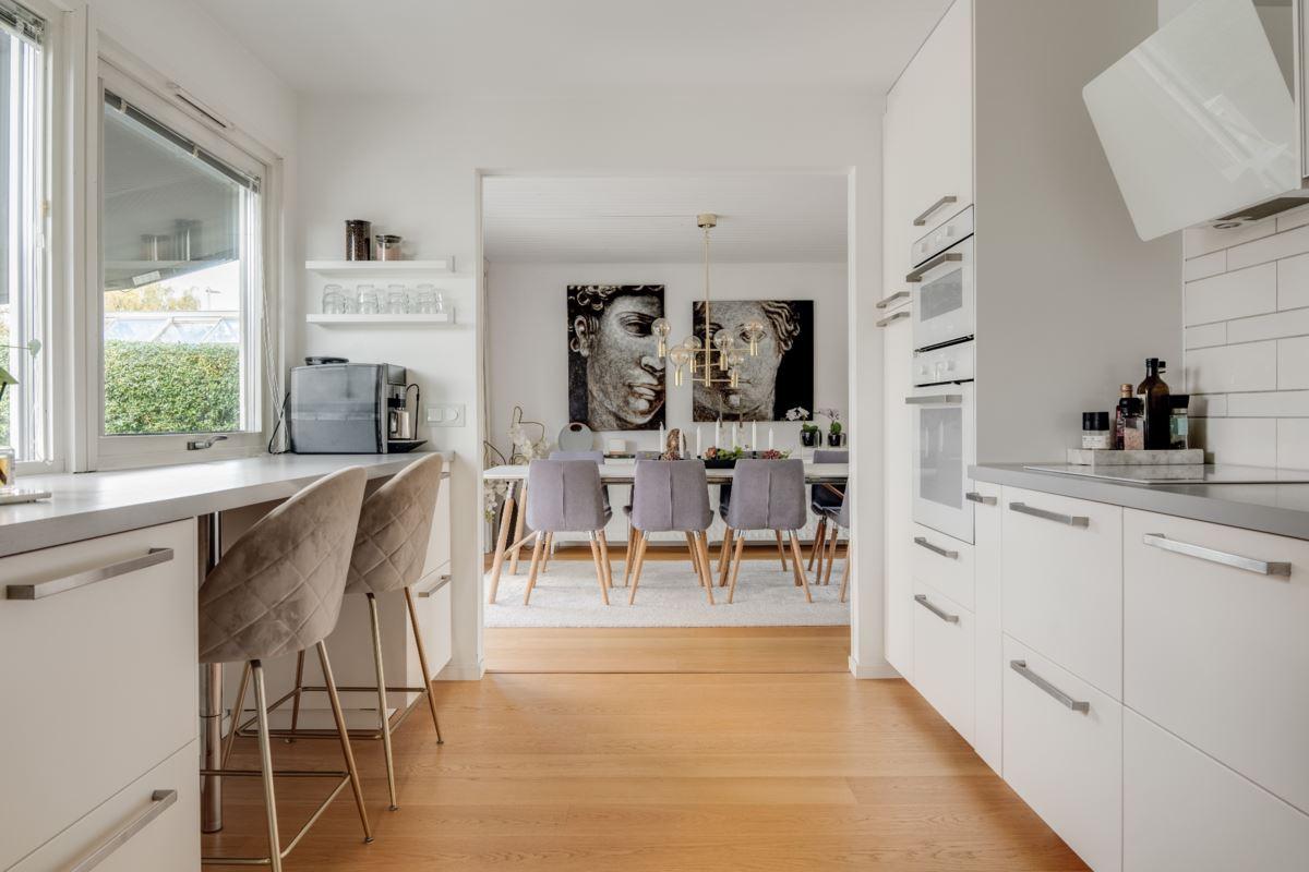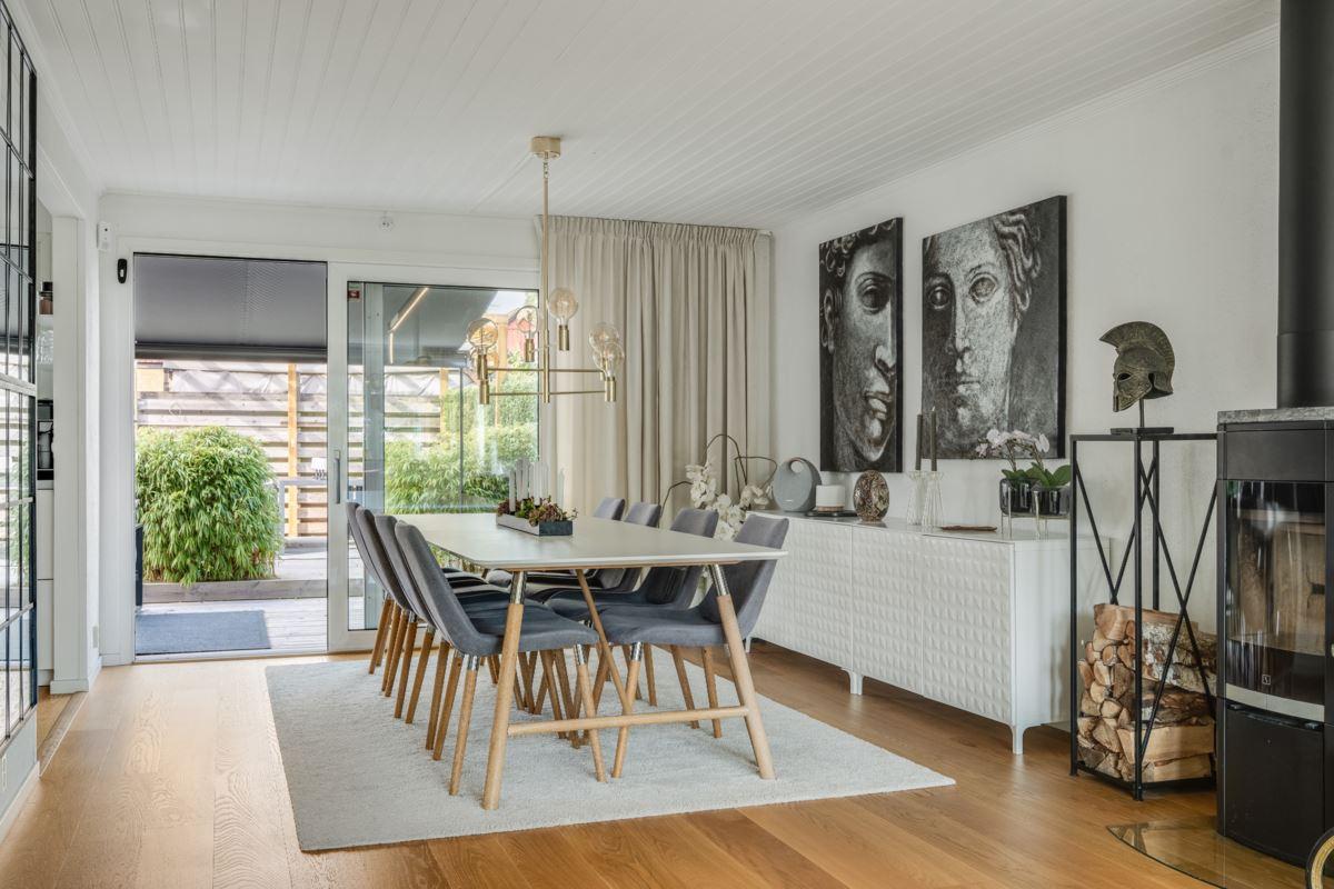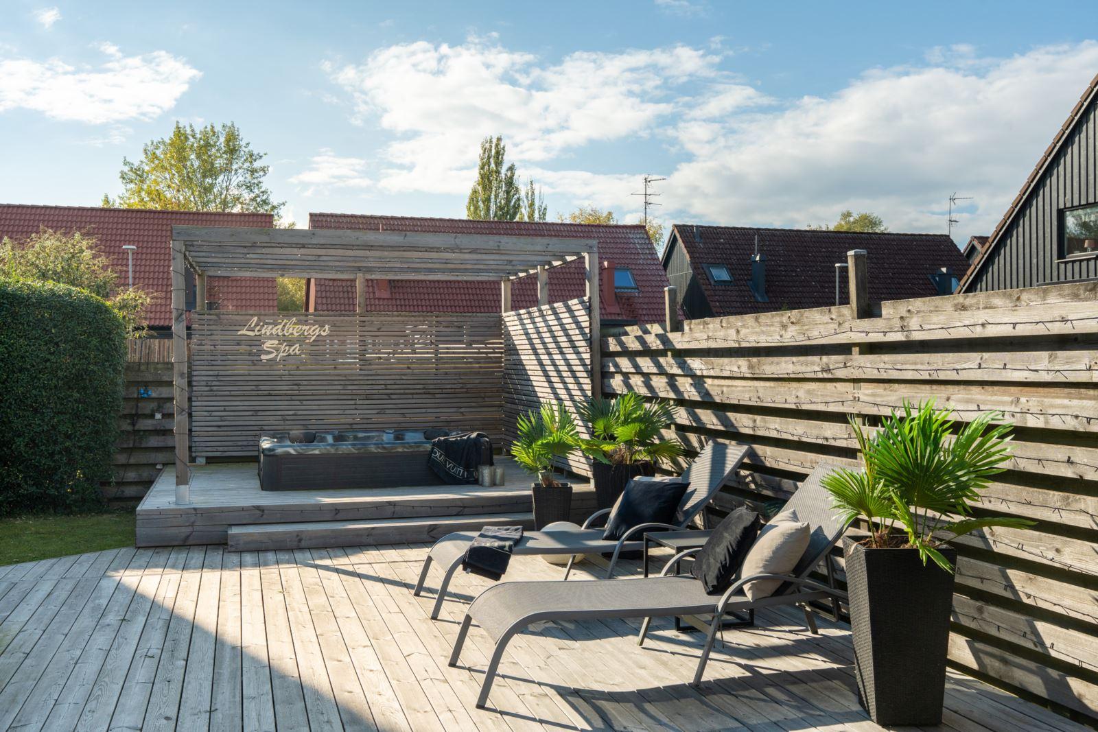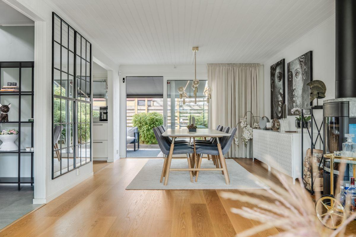 Välkommen till detta eleganta hem med en modern känsla, perfekt för dig som vill flytta in helt utan bekymmer – för här kan du direkt börja njuta av en modern, välskött trädgård, stilren inredning och noggrant utvalda material. Skönhet och funktion förenas i en harmonisk helhet där varje detalj är omsorgsfullt planerad. Planlösningen är smart utformad för en stor familj, med många sovrum och hållbara material som bidrar till en varm och välkomnande atmosfär. Den smakfullt renoverade bostaden rymmer flera rymliga sovrum, inklusive ett elegant master bedroom med industriglasvägg. Huset präglas av en modern och ombonad känsla, som förstärks av en stilfull entré och klassiskt kök. Bland exklusiva tillval finns en mysig braskamin som skapar värme och atmosfär, samt en generös walk-in closet som underlättar vardagslivet. Utomhusmiljön är något alldeles extra. Den insynsskyddade trädgården erbjuder ett stort trädäck, en inbjudande jacuzzi och en pergola – en privat och lyxig oas för både avkoppling och sociala tillfällen.